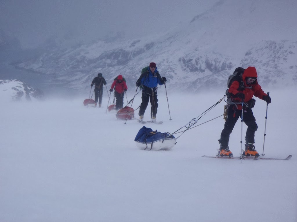 The great advantage of Brynje’s mesh underwear in these conditions is how dry it keeps you and how fast you can cool down. It’s hard work pulling a sled and even though the weather was more or less constantly hostile during our four-day trek, I generated a lot of heat, especially uphill. Any kind of moisture next to your skin when you stop is horribly chilling so the ability to regulate my temperature perfectly was a real advantage. I just closed up my Buffalo zips whenever I felt chilly.