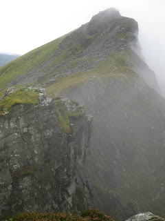 Anyway, weather at the top was 4 Celsius and windy. The kit was perfect, and I was able to close up the vents to keep the heat in as the work rate slowed down as we scrambled along the steeper part of the ridge. Once up and over the very wet and slippery scramble, the ridge opens out to a nice path and the views also open up as the cloud began to lift.